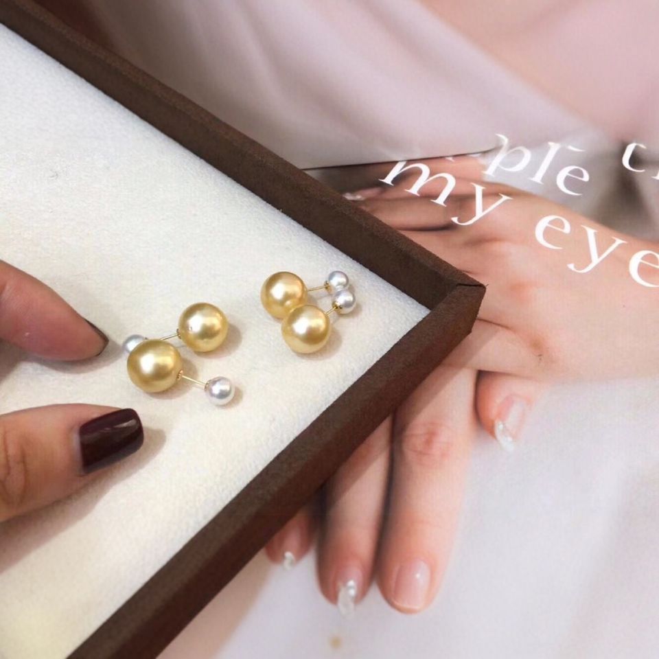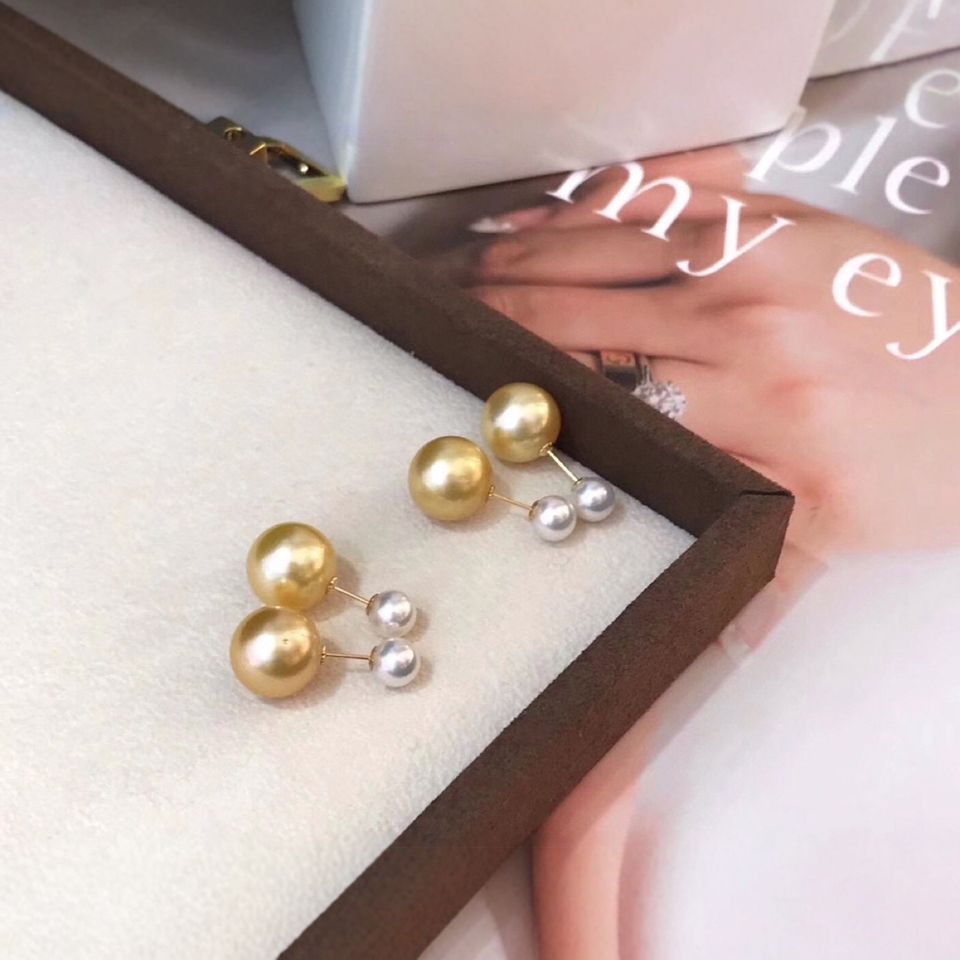 18K Gold Fine Dangle Earrings Classic Basic Natural Freshwater Akoya 11-12mm Factory Direct Wholesale