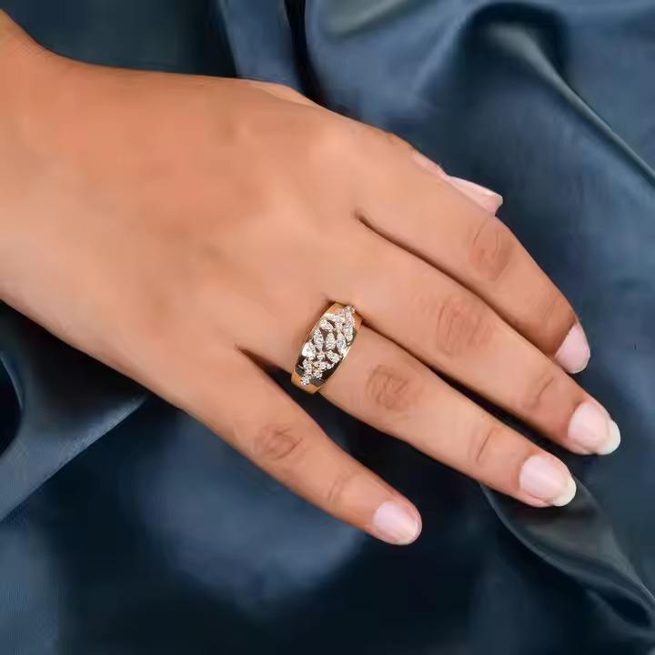 18K Gold Lab Grown Marquis Diamond Cluster Engagement Ring Statement Dome Wedding Ring Yellow Gold Fine Jewelry Gift for Her