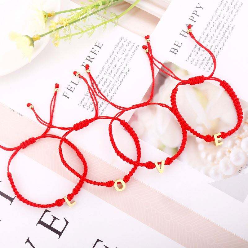 18K Gold Letter A-Z Charm Stainless Bracelets Handmade Rope Adjustable Bracelet Heart Initial Couple Bracelet