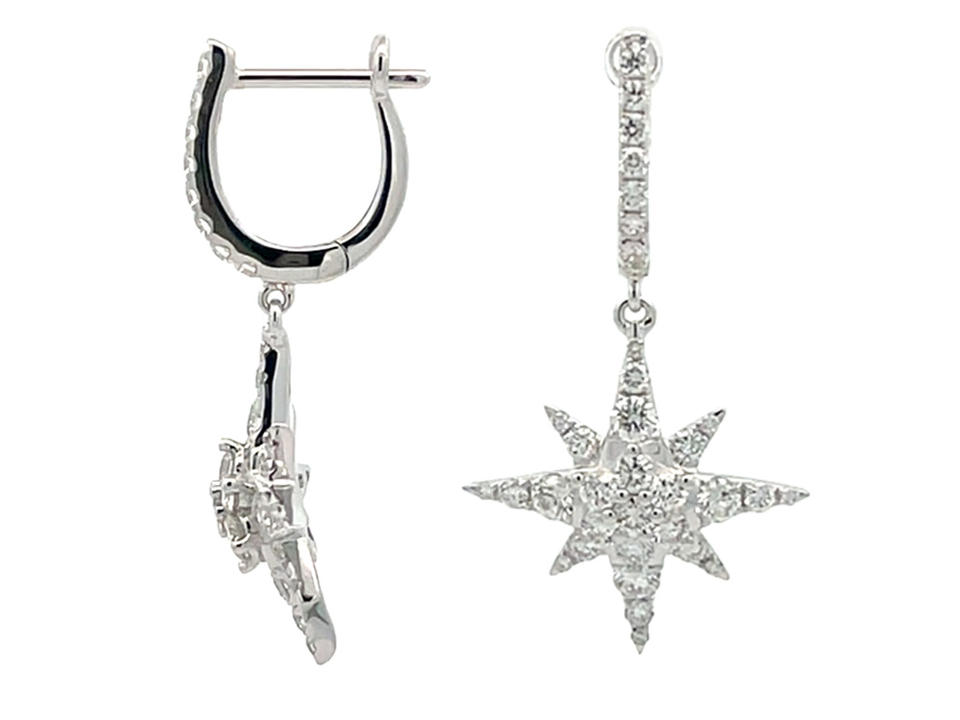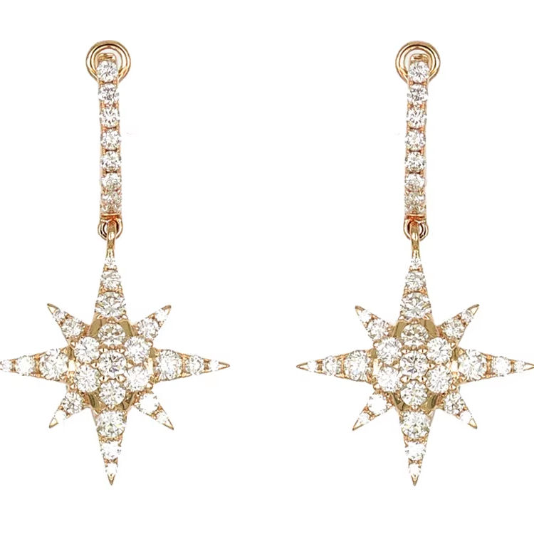 18K Gold Multi-Tone Star Design Pave Diamond Dangle Earrings Luxury Jewelry Hypoallergenic Women Accessory