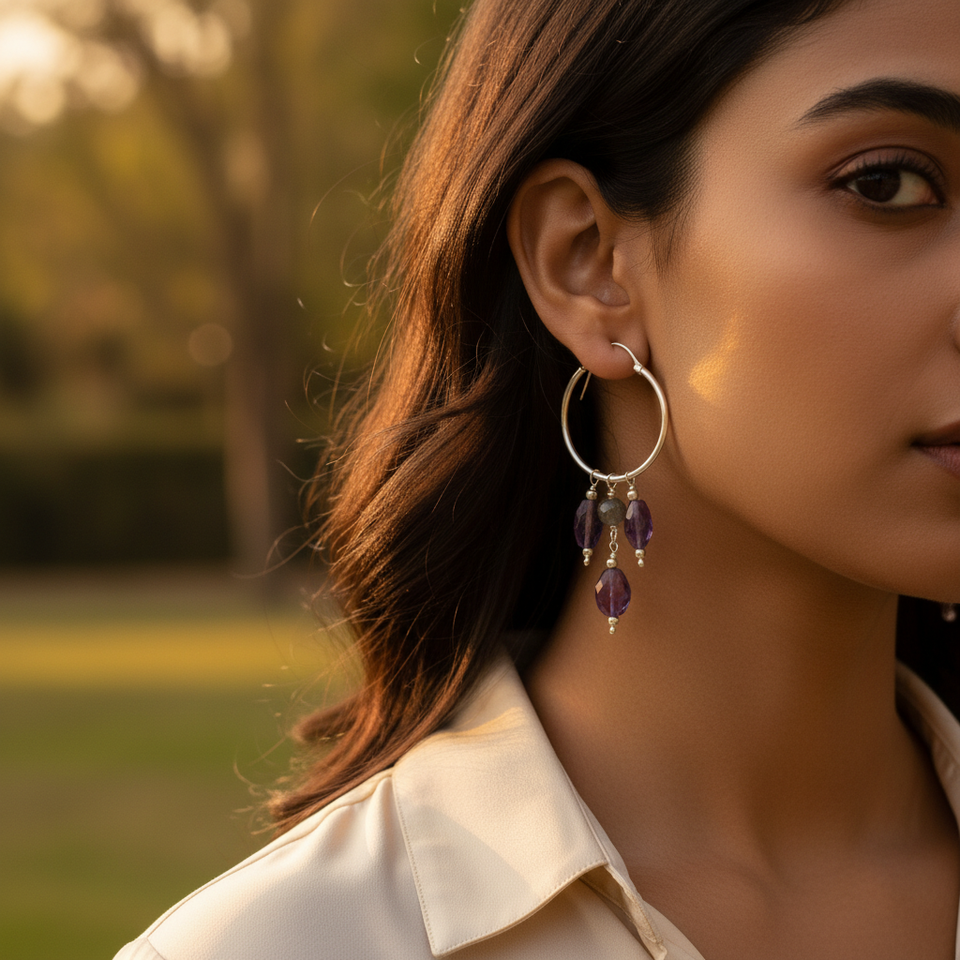18K Gold Plated 925 Silver Amethyst Hoop Dangle Drop Earrings White Gold Pendant Earrings with Diamond and Pearl for Parties