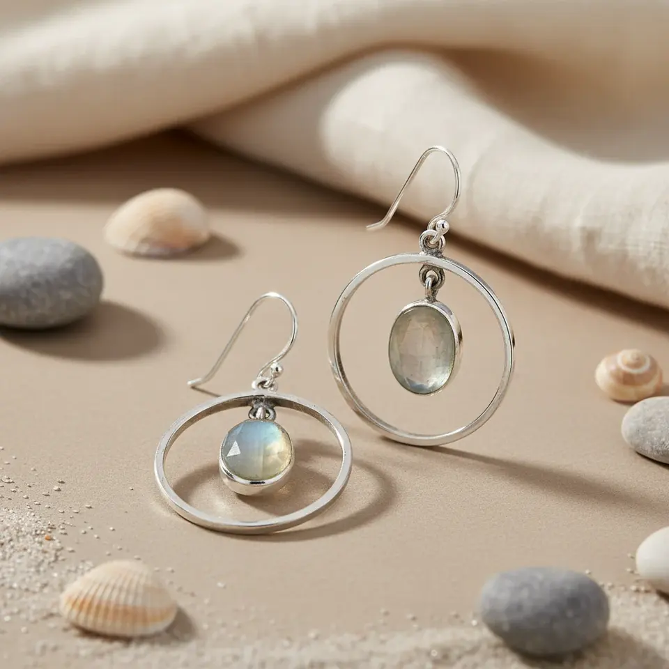 18K Gold Plated 925 Silver Moonstone Hoop Earrings Drop Dangle Earrings with Zircon for Women for Weddings and Parties