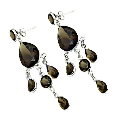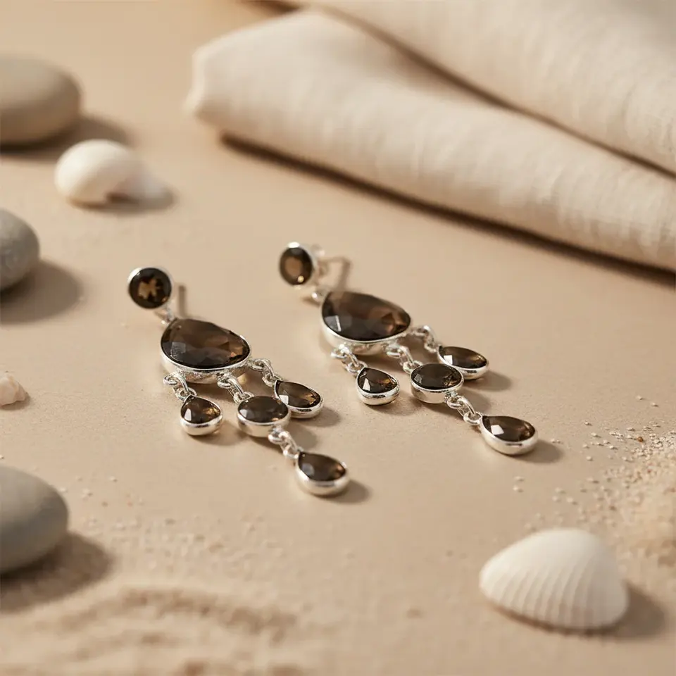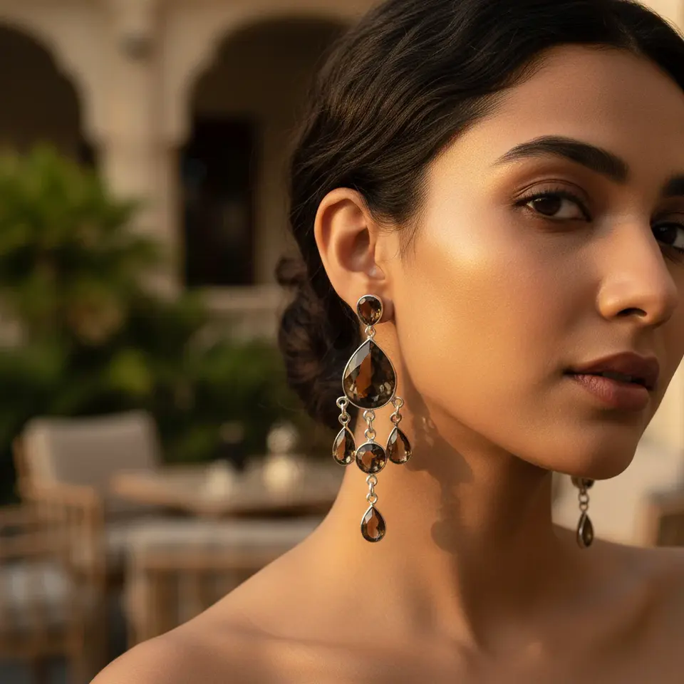 18K Gold Plated 925 Silver Smoky Quartz Dangle Earrings for Women for Weddings and Parties Featuring Moissanite Diamond Pearl