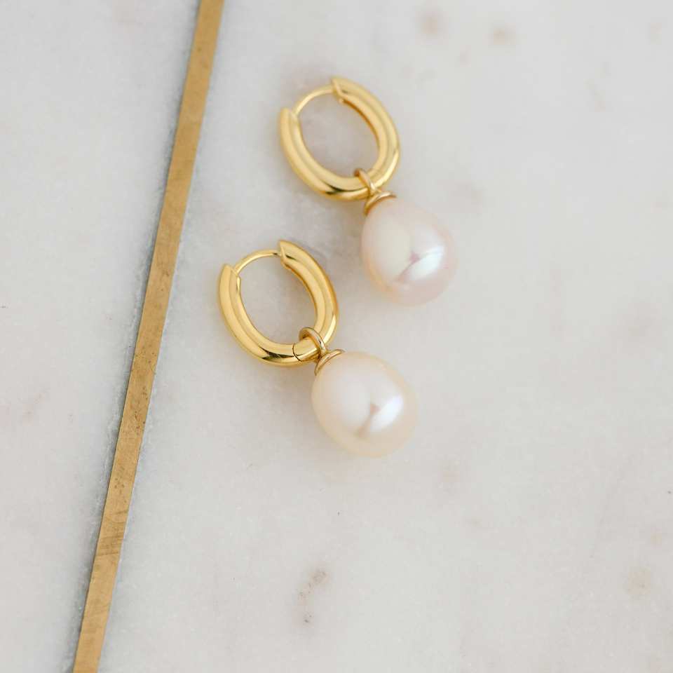 18K Gold Plated 925 Sterling Silver Hoop Earrings Unique Natural Freshwater Pearl Gemstone High Quality Fine Weddings Gifts