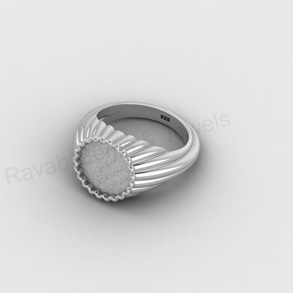 18K Gold Plated 925 Sterling Silver 12mm Blank Bezel Cup Texture Band Signet Ring Cabochon Setting Breastmilk Resin Ashes Bag