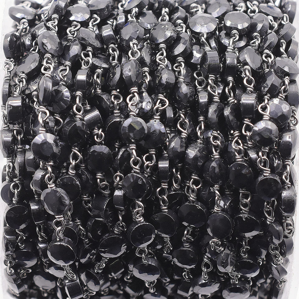 Product Name:Black Onyx Oxidized Plated Sterling Silver Rosary Wire Wrap Chain