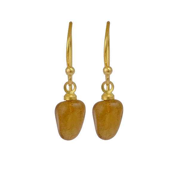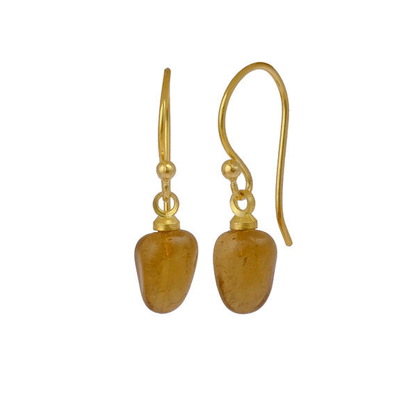 18K Gold Plated Citrine Smooth Tumble Drop Earrings Contemporary Style Statement Jewelry with Hook Design