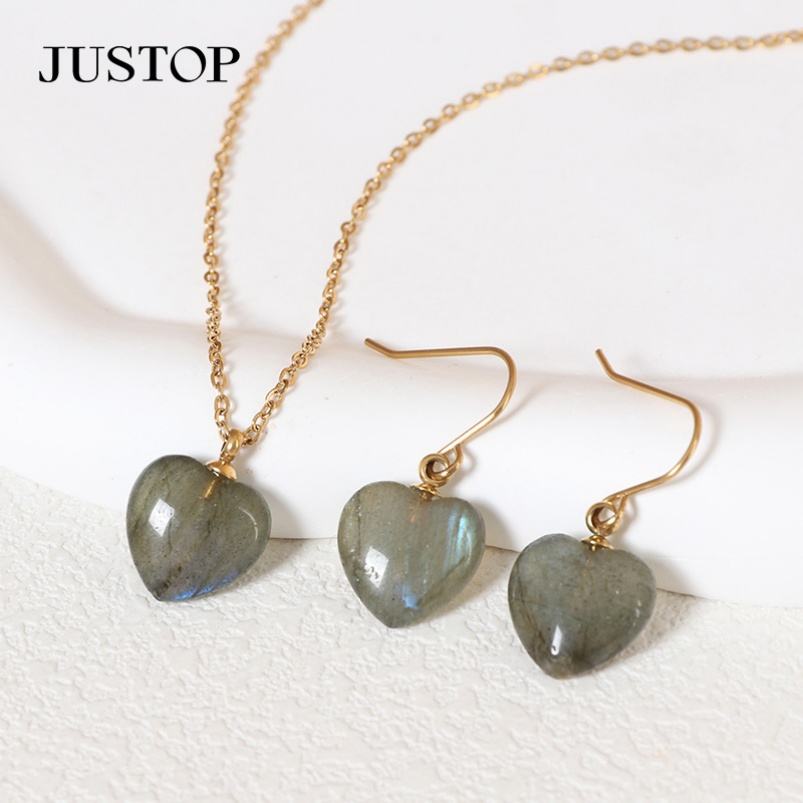 18K Gold Plated Classic Crystal Rhinestone Heart Jewelry Set Women Stainless Steel Necklace Earrings Engagement Party Weddings