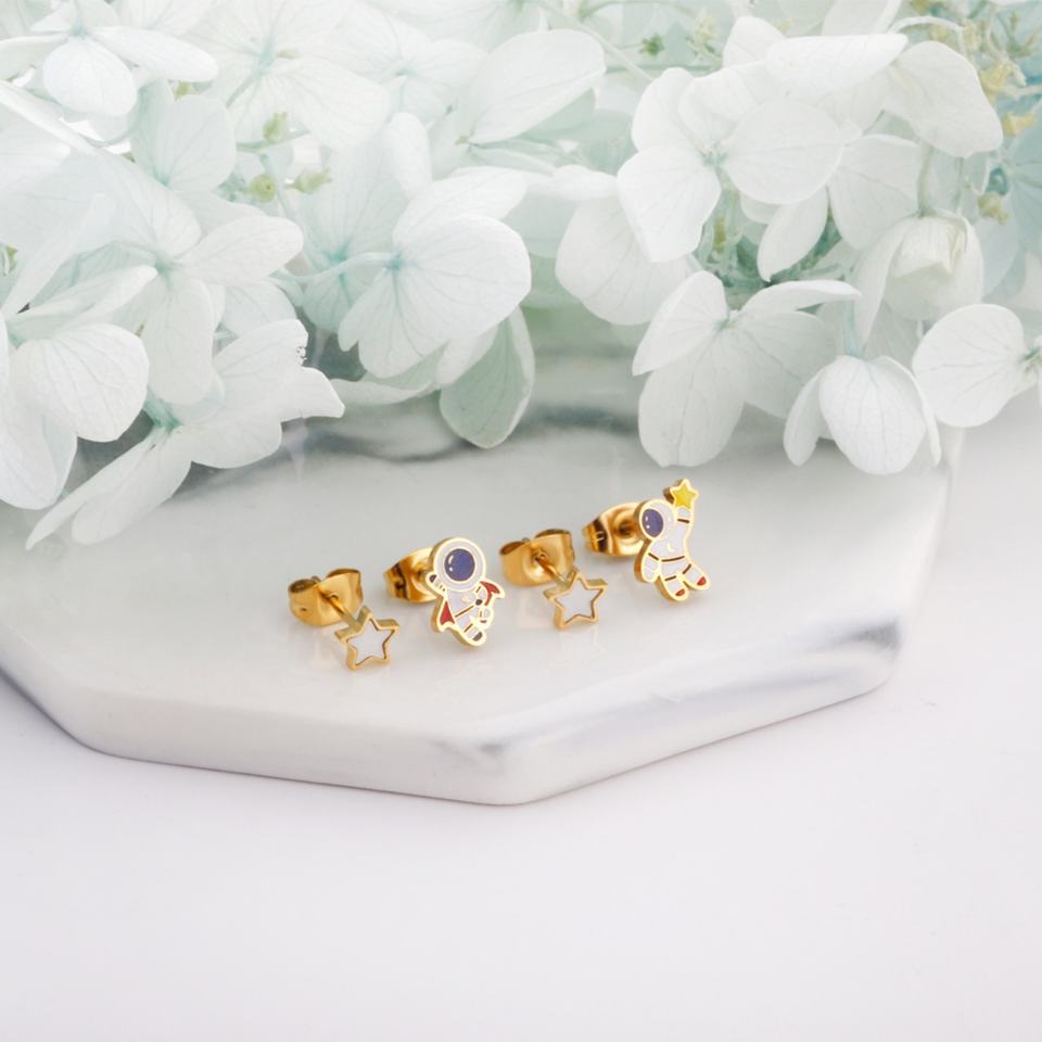 18K Gold Plated Cubic Zirconia Earrings Stainless Steel Astronaut Stud Earrings Women Trendy
