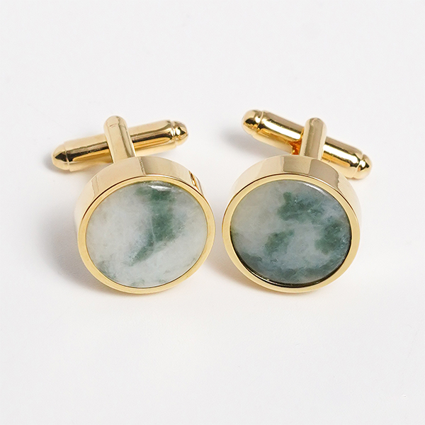 18K Gold-Plated Cufflinks for men with Fengshui Gemstone Jadeite MSDAXL005 |Tinh Vu Collection| Made in Vietnam