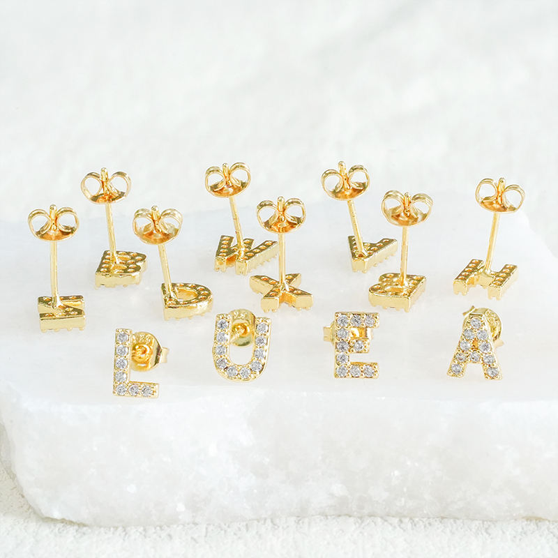 18K Gold Plated Custom Men Alphabet Initial Tiny Cubic Zirconia Ear Piercing Letter Cartilage Screw Back Stud Earrings for Women