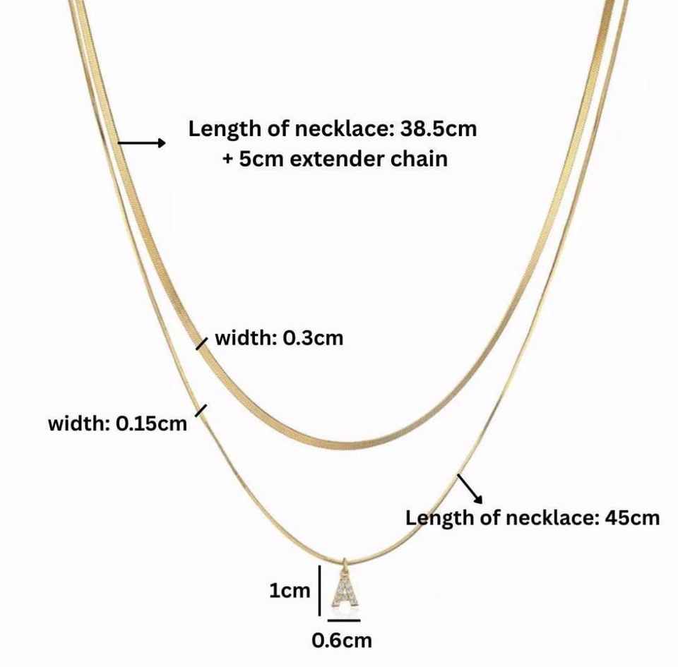 18K Gold Plated Layered Initial Necklace | Anti-Tarnish Zircon Letter Pendant Jewelry Set | Dainty Snake Chain Necklace