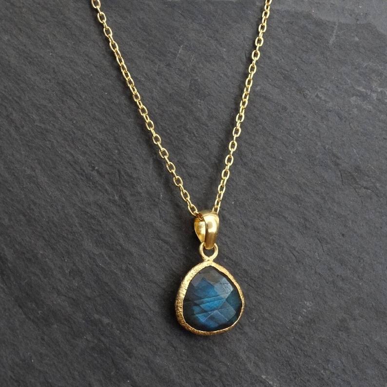18K Gold Plated Natural Labradorite Pear Cut Gemstone Bezel Setting S925 Sterling Silver Vintage Handmade Pendant Necklace Women