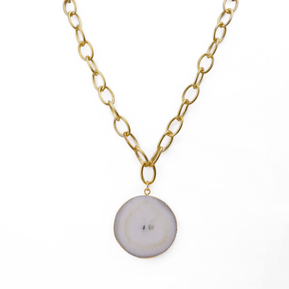 18K Gold Plated Natural Solar Quartz Crystal Pendant Necklace White Solar Quartz Gemstone Layering Fashion Necklaces for Healing