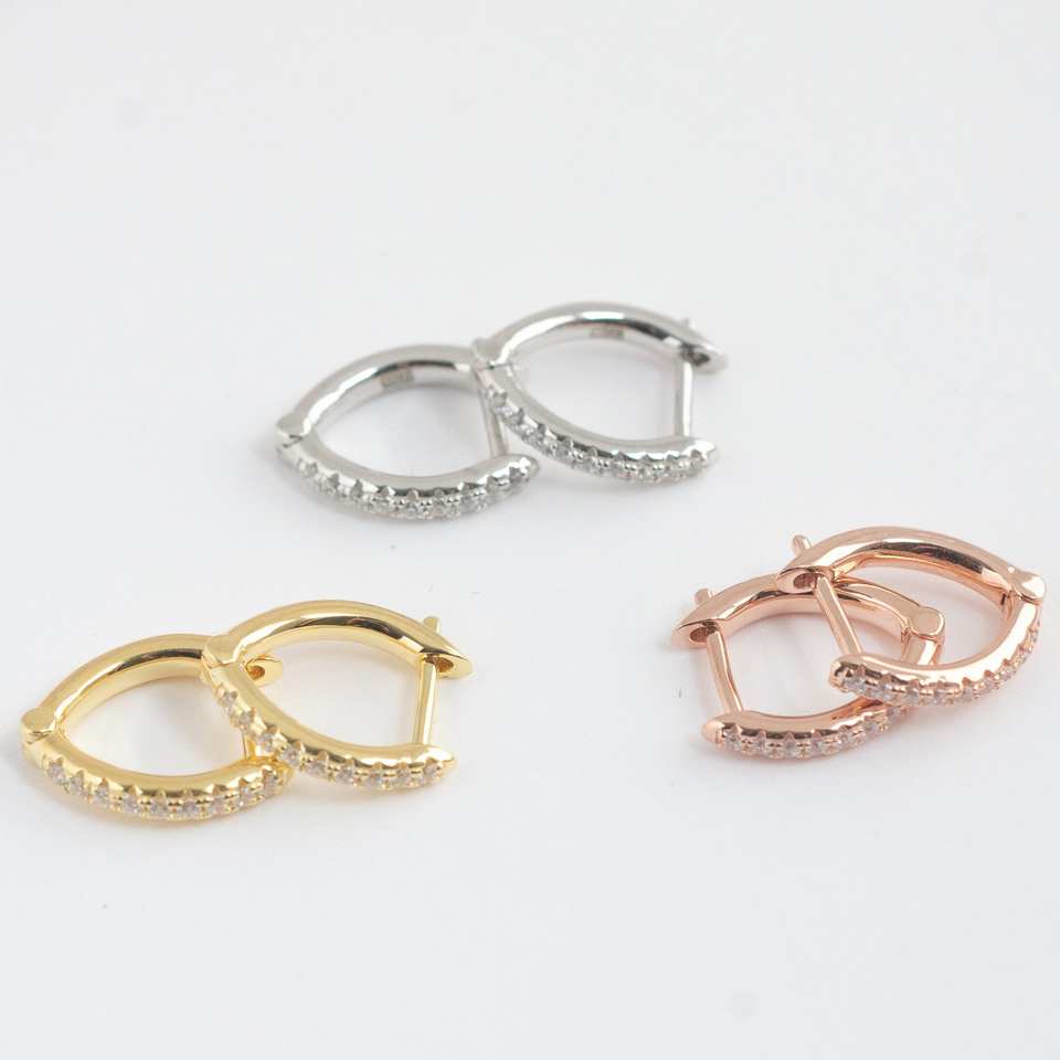 18K Gold Plated Real 925 Sterling Silver Round Cut Small Cz Stone Zircon Versatile Hoop Earrings Handmade Jewelry Accessories