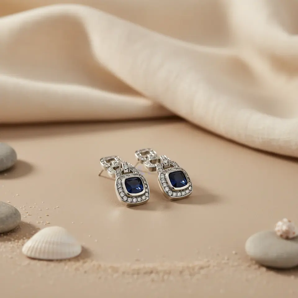18K Gold Plated Silver Sapphire Drop Earrings for Women Chain Link Dangle with Heart-shaped Diamond Moissanite for Weddings