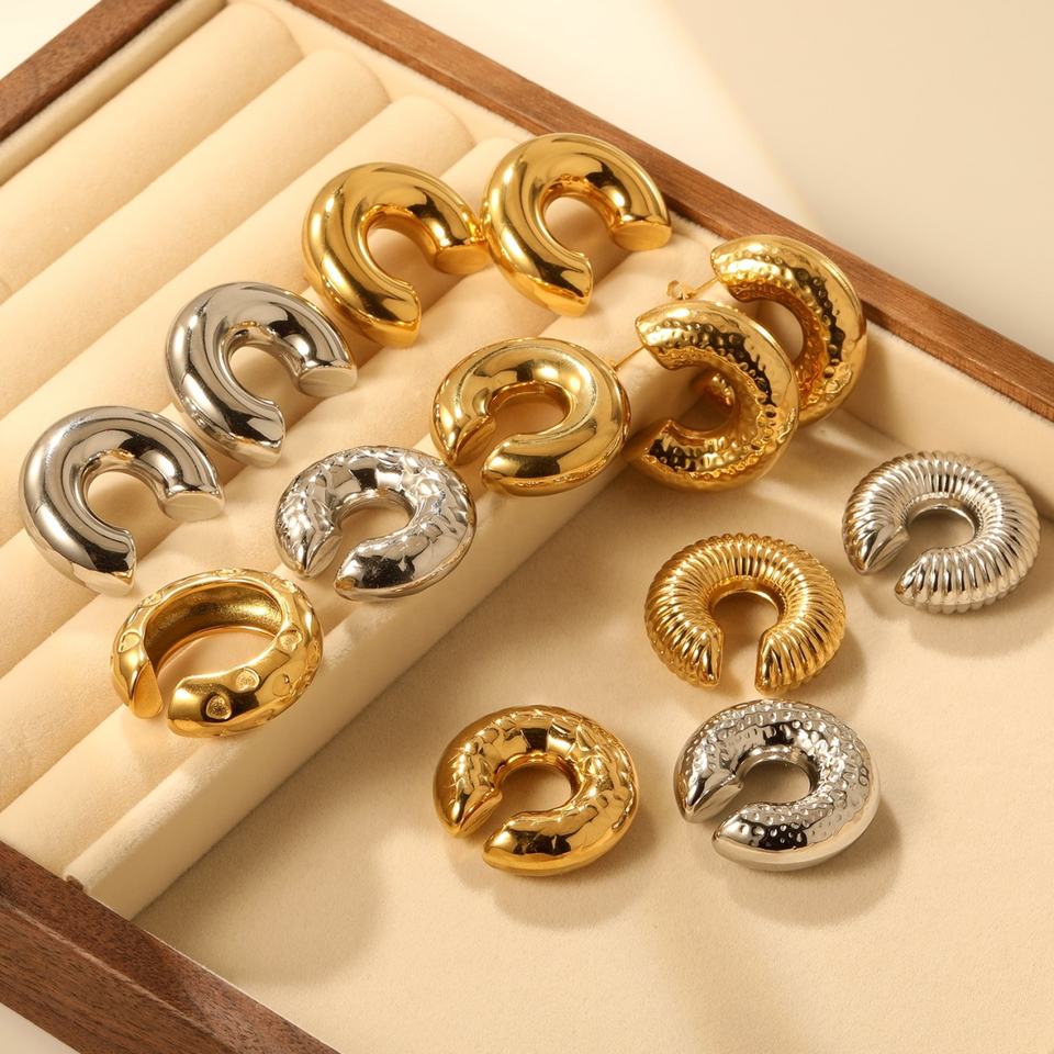 18K Gold Plated Stainless Steel Jewelry Chunky Non Pierced Fashion Clip-on Earrings Cubic Hoop Fashion Cuff Earrings for Women