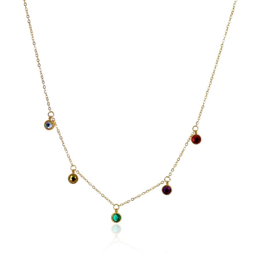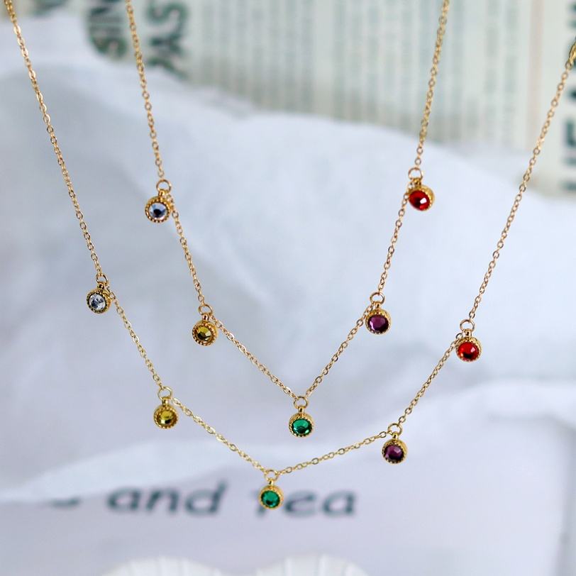 18K Gold Plated Stainless Steel Minimalist Colored Rhinestone Pendant Colorful Diamond Rainbow Necklace Set Fashion Jewelry