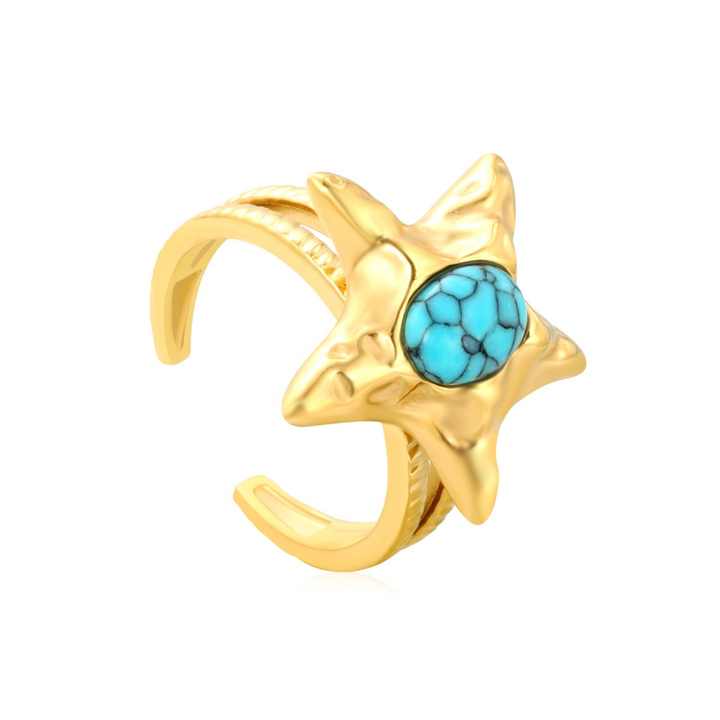 18K Gold Plated Stainless Steel Trendy Rings Fashion Blue Ocean Star Turquoise Starfish Adjustable Rings Jewelry for Women
