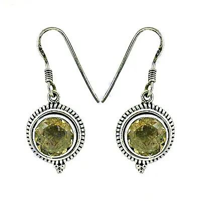 18K Gold Plated Vintage Style 925 Sterling Silver Citrine Drop Earrings with Diamond for Women's Wedding Jewelry