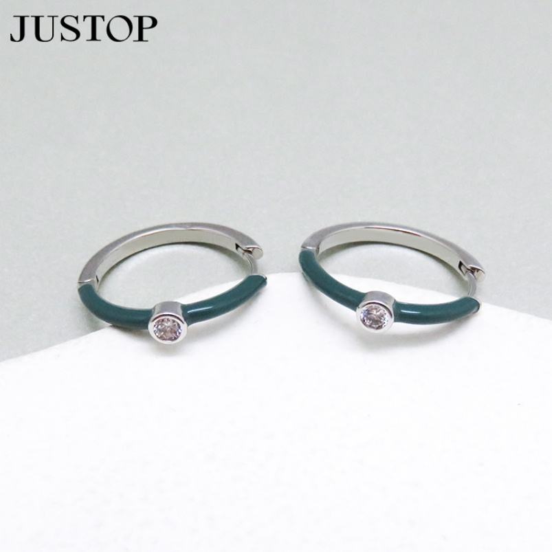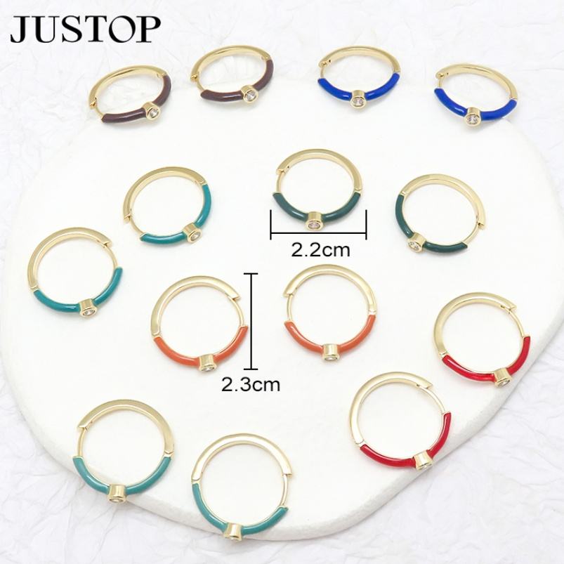 18K Gold Silver Plated Brass Environmental Friendly New Trendy Design Geometric Enamel Circle Hoop Stud Earrings Zircon Custom