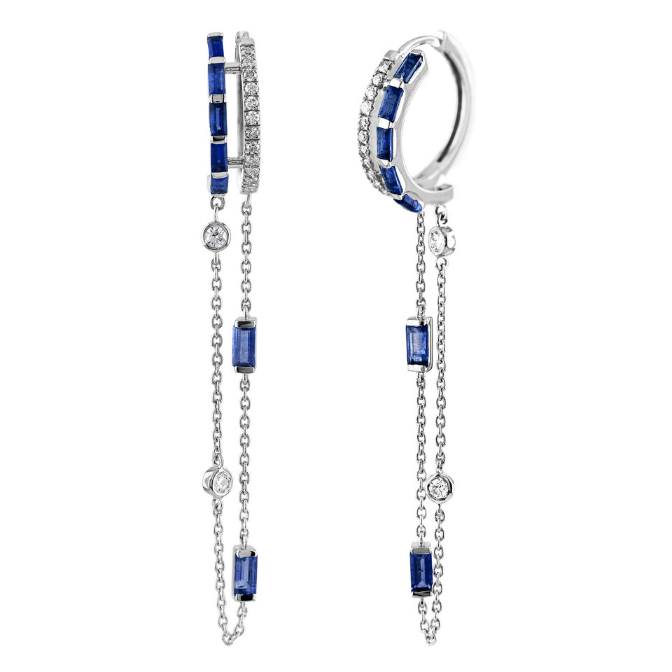 18K Gold Solid Stud Earrings for Women Natural Diamond & Blue sapphire Cluster Design for Wedding Party Gift