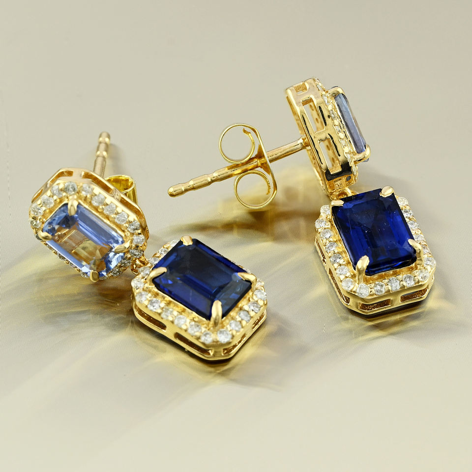 18K Gold Solid Stud Earrings for Women Natural Diamond & Blue Sapphire Cluster Design for Wedding Party Gift