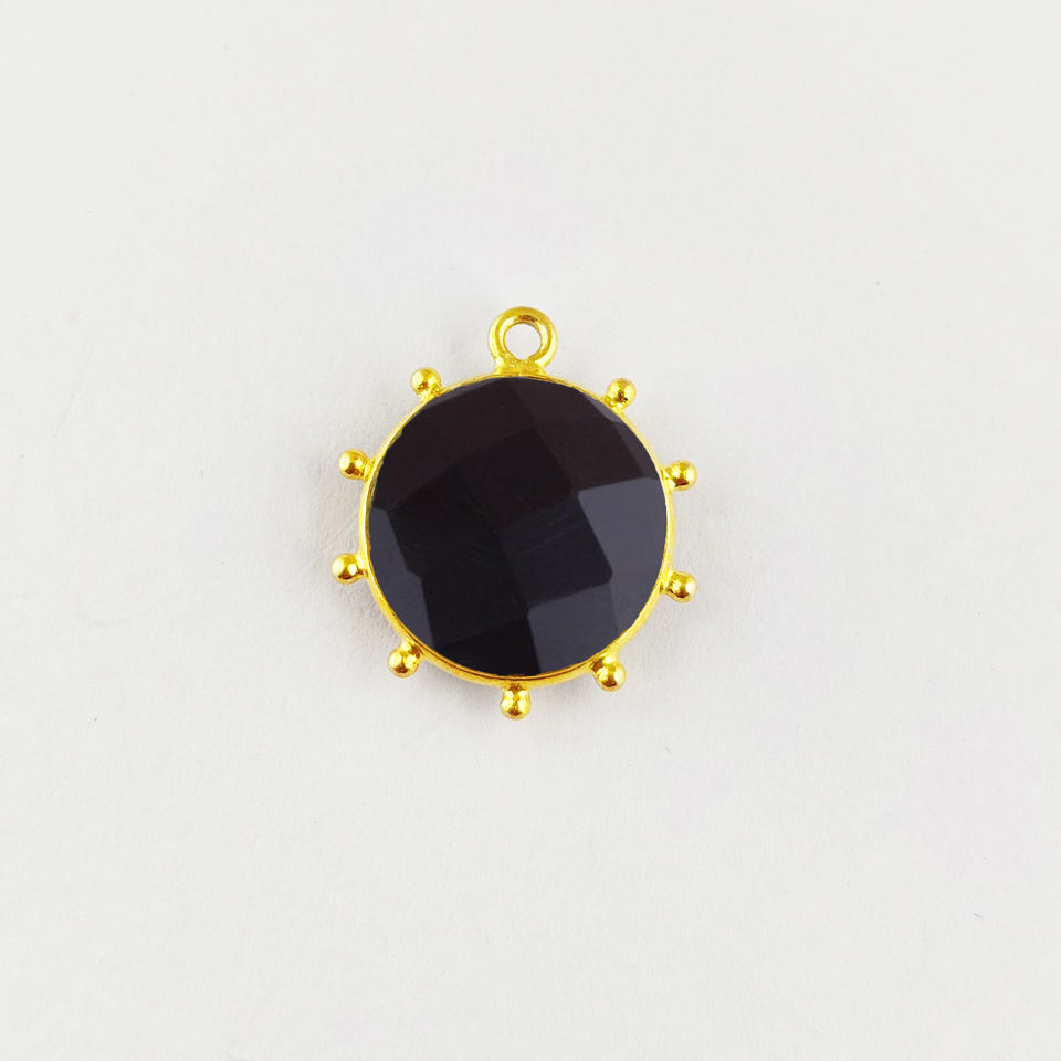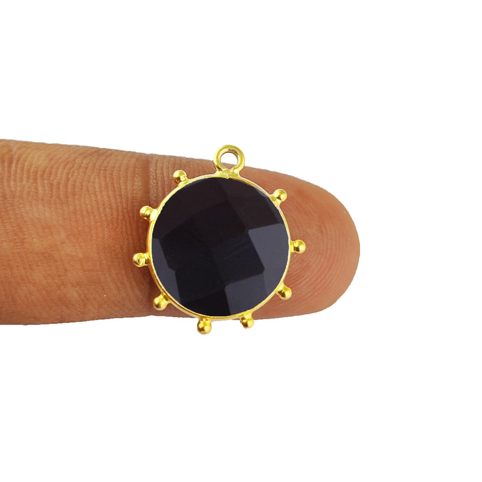 18K Gold Vermeil 925 Sterling Silver Crystal Pendant & Charm Black Onyx Bezel Briolette with Fancy Bezel Healing Crystal Charm