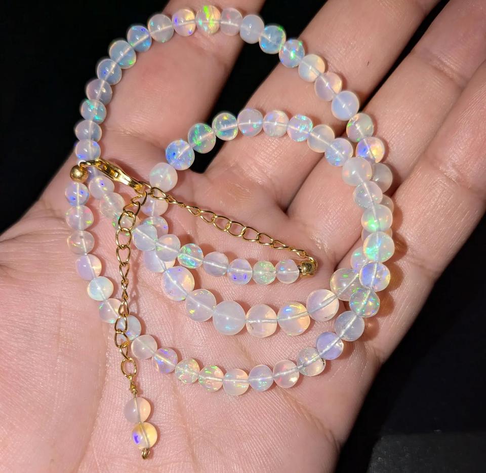 18K Gold Vermeil Natural Ethiopian Fire Opal Bead Necklace 100% Handmade Smooth Luxury Wedding 6mm Strand Beaded Gift