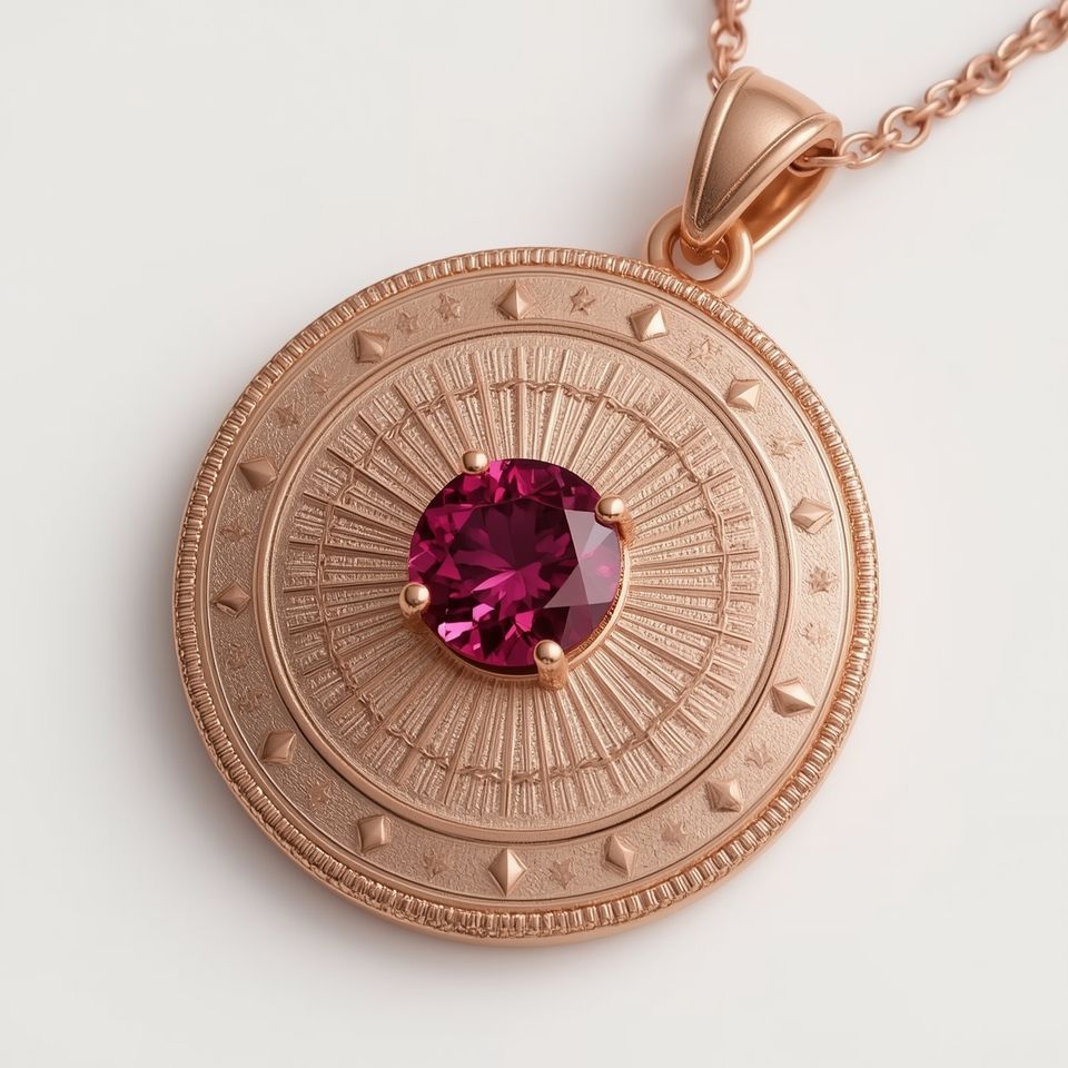 18K Real Gold Ruby Zodiac Pendant Necklace Platinum Luxury Fine Birthstone Design Ethical Sustainable Gemstone OEM Thailand