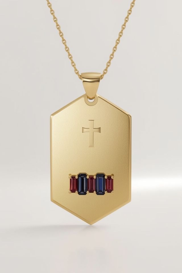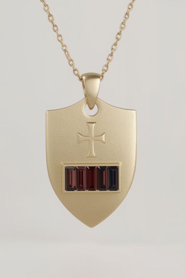 18K Recycled Gold Fine Jewelry Necklace for Women Cross Shield Pendant with Ruby Gemstones Link Chain Style