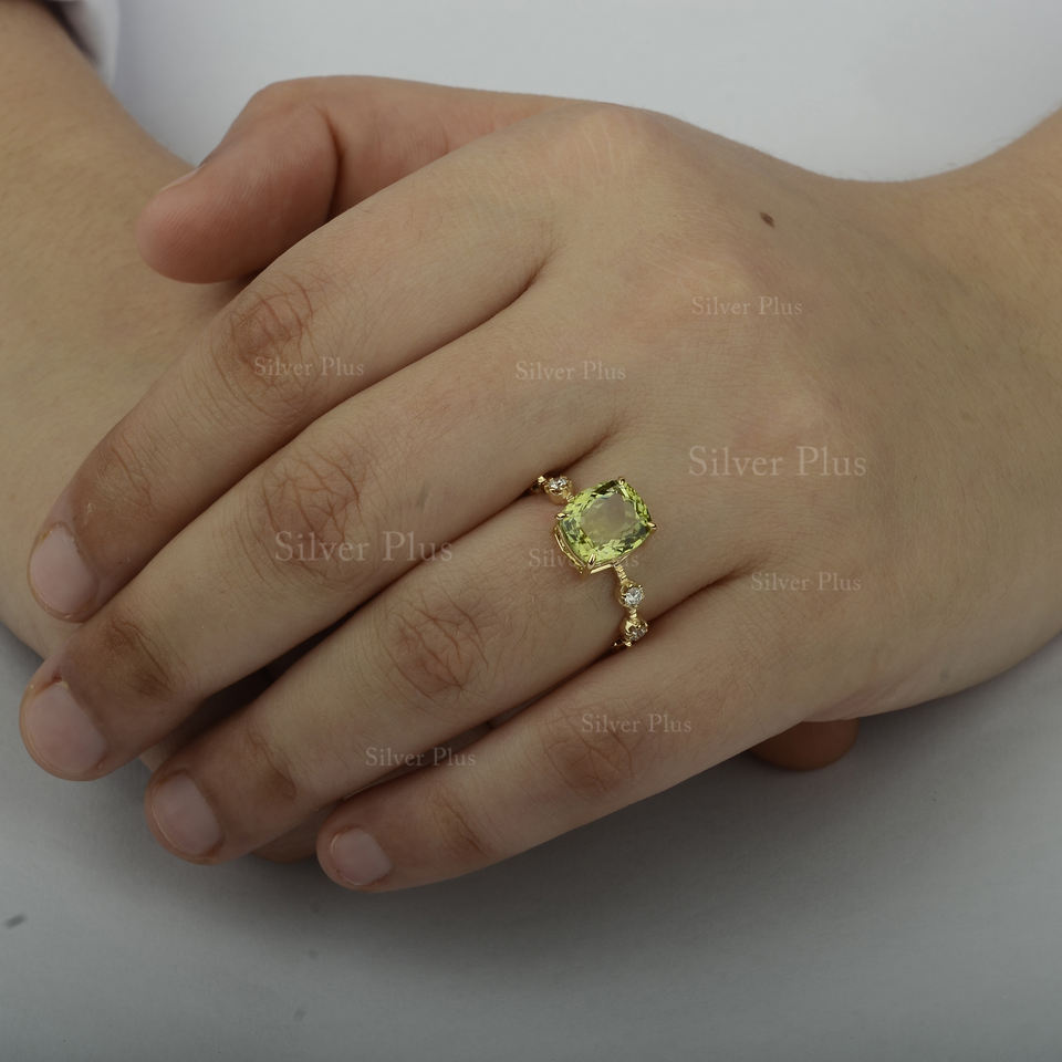 18K Solid Gold Cushion Green Tourmaline With Diamond Bubble Gold Ring Elegant Gift Woman Jewelry
