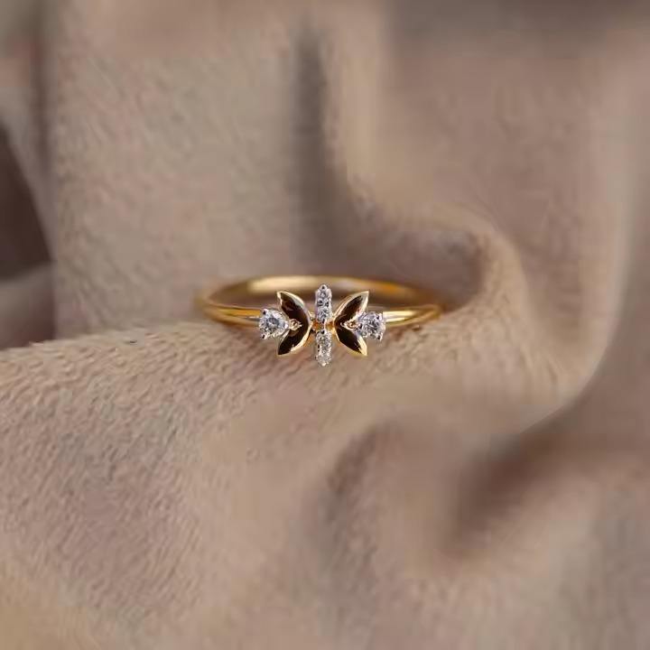 18K Solid Gold Designer Ring Diamond Jewelry For Gift Six Lab Grown Diamond Dainty Gold Ring Promise Ring For Girlfriend
