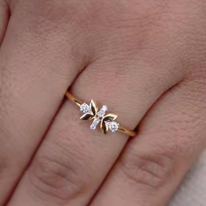 18K Solid Gold Designer Ring Diamond Jewelry For Gift Six Lab Grown Diamond Dainty Gold Ring Promise Ring For Girlfriend