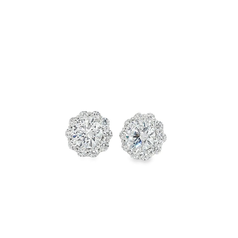 18K Solid Gold Geometric Halo Drop Earrings with Center Cultured Diamond Luxury Gift Jewelry