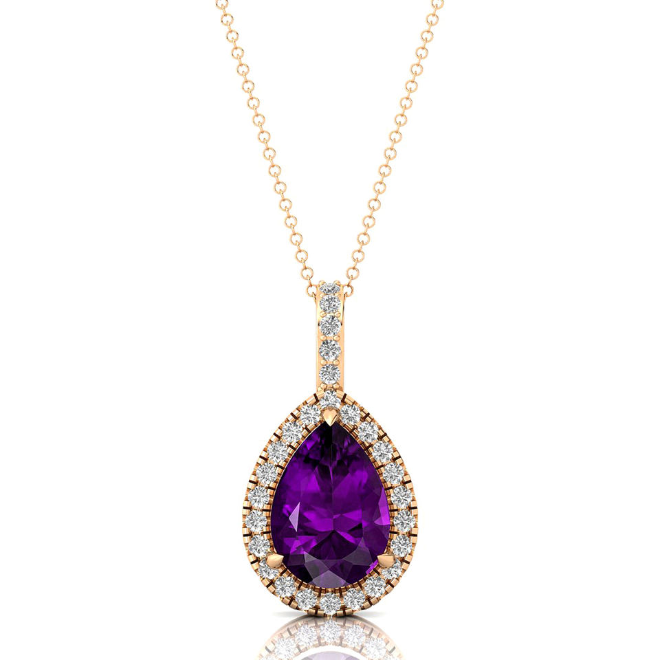 18K Solid Gold Minimalist Jewelry Natural Amethyst Gemstone Halo Solitaire Diamond Luxurious Women's Bridal Collection OEM/Bulk