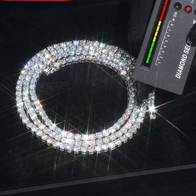 Brass Tennis Necklace with Yellow Gold Rope Chain and Moissanite Stones 925 Sterling Silver Gift for Women/Unisex