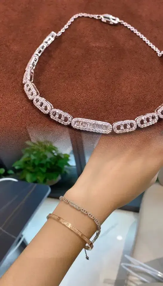 18K Solid Gold VVS Natural Full Diamond Charm Bracelet Women Exquisite Full Bling Wedding Bridal Party Fashion Bracelet