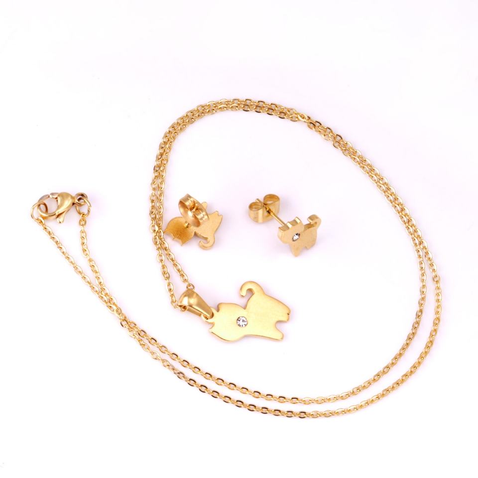 18K Stainless Steel Dubai Gold Plated Princess Summer Style Cartoon Angel Kids Children Jewelry Set