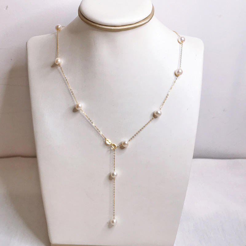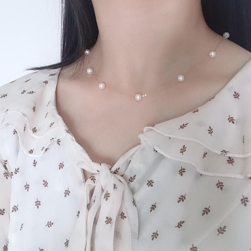 18K Starry Sky Pearl Necklace for Women Luxury Freshwater Small Pearl Clavicle Chain Sweet Beaded Neck Decoration