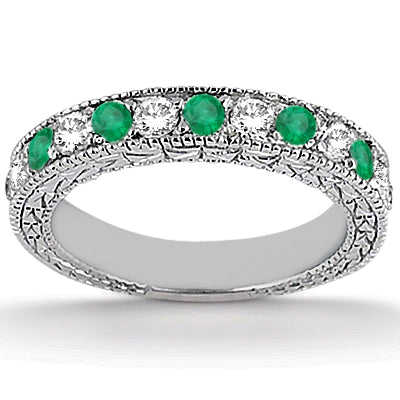 18K White Gold Antique Diamond & Emerald Bridal Set 1.75ct Fine Jewelry Heart Pattern Gold Plated Rose Gold for Weddings Parties