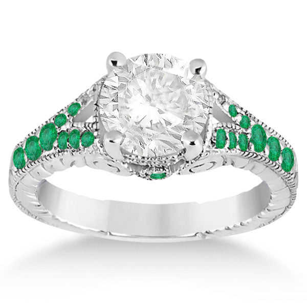 18K White Gold Antique Style Art Deco Engagement Ring 0.33ct Emerald Cut Princess Cluster Fine Jewelry