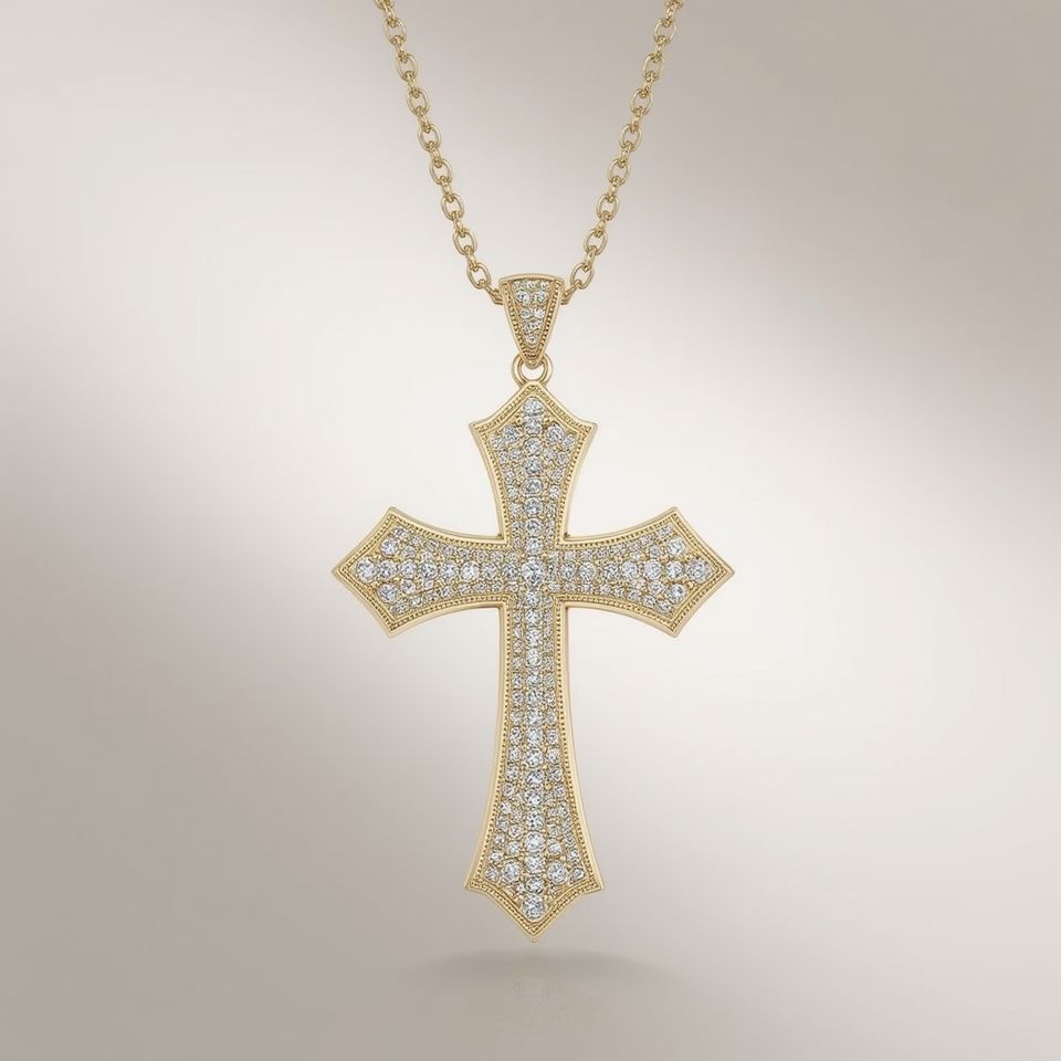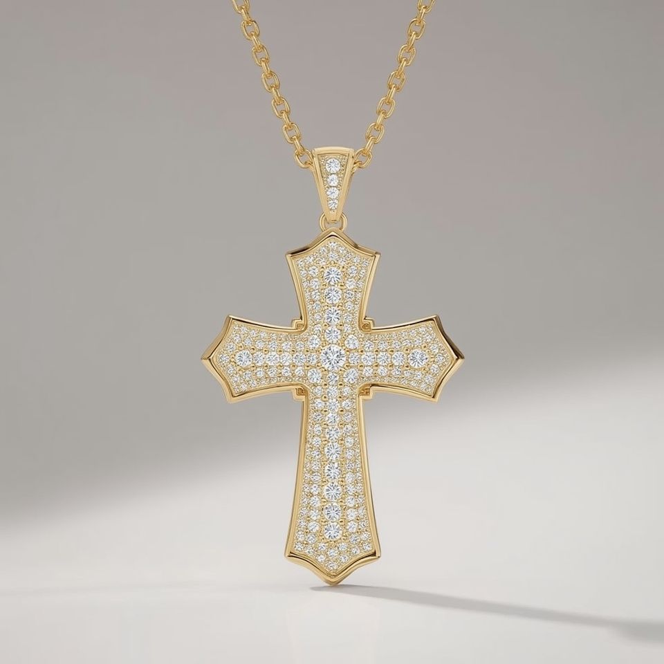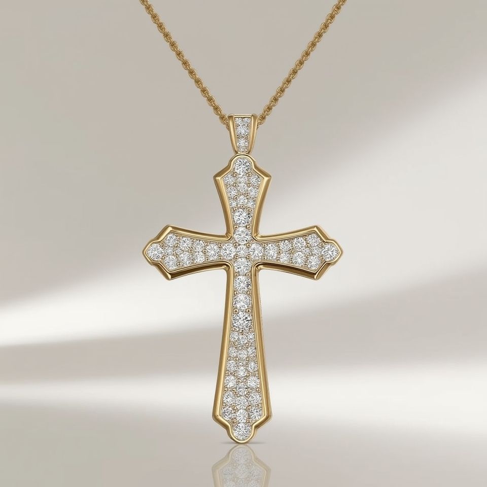 18K White Gold Cross Pendant Natural Stones Minimalist Style GIA Certified Luxury Fine Religious Necklace for Women Link Chain