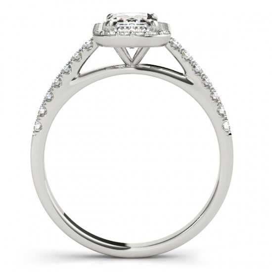 18K White Gold Fine Jewelry Set Diamond Halo Emerald-Cut Bridal with 1.00ct Stone