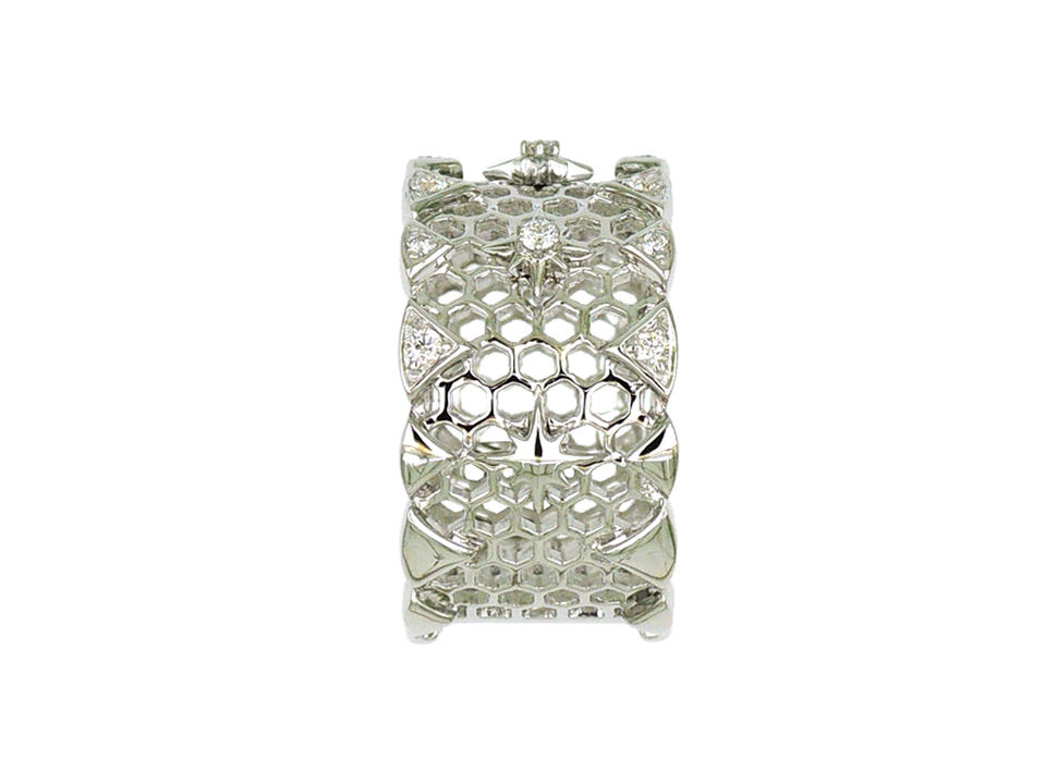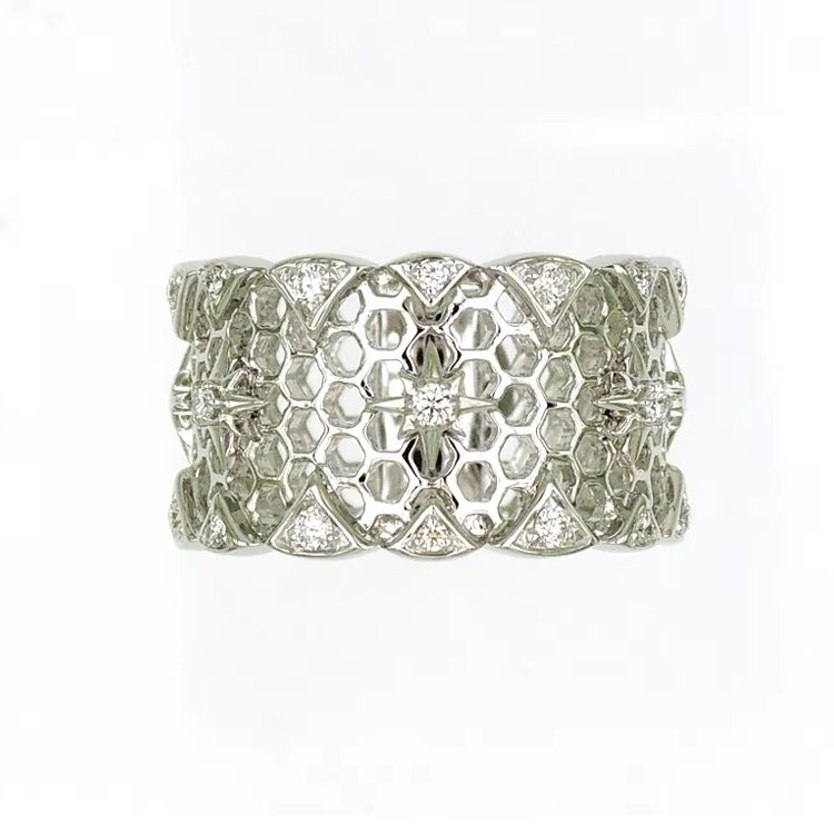 18K White Gold Honeycomb Texture Diamond Accent Wide Band Ring Luxury Modern Jewelry For Women