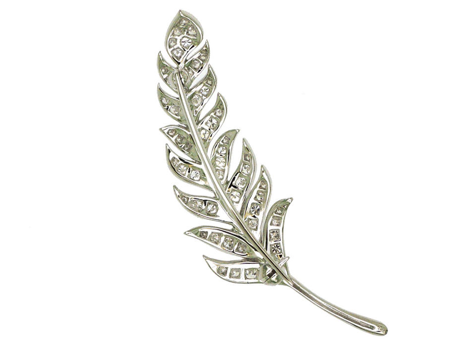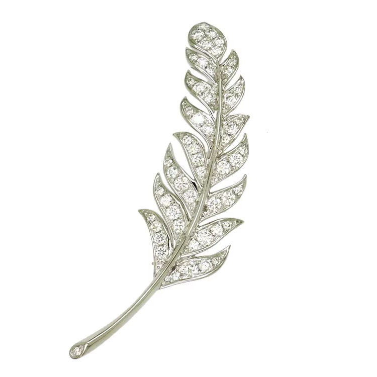 18K White Gold Luminous Feather Brooch With Diamond Pave Minimalist Luxury Jewelry