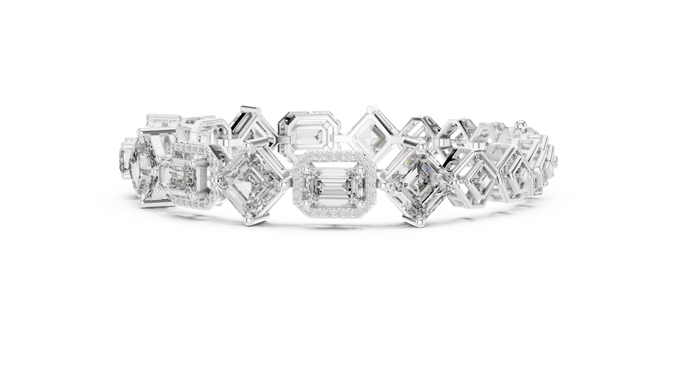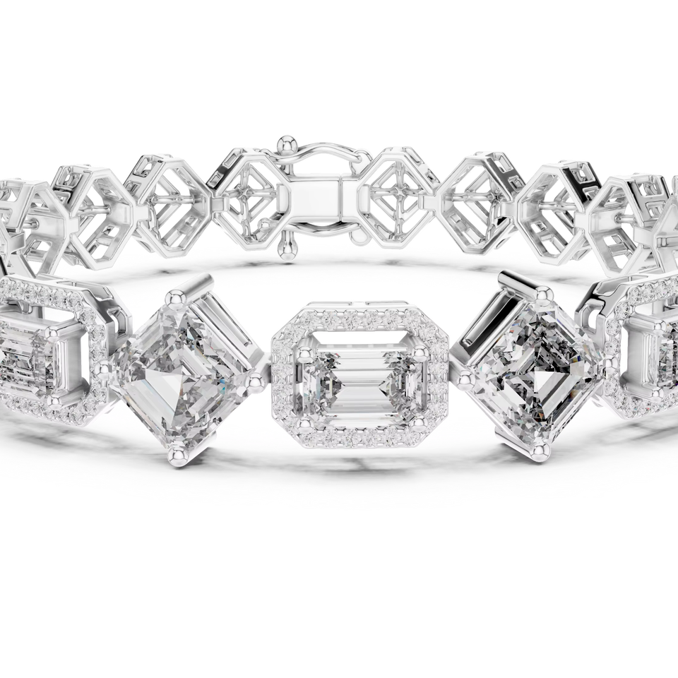 18K White Gold Timeless Signature Geometric Diamond Bracelet Radiant Diamond Bracelet Luxe Multi Shape Diamond Link Bracelet