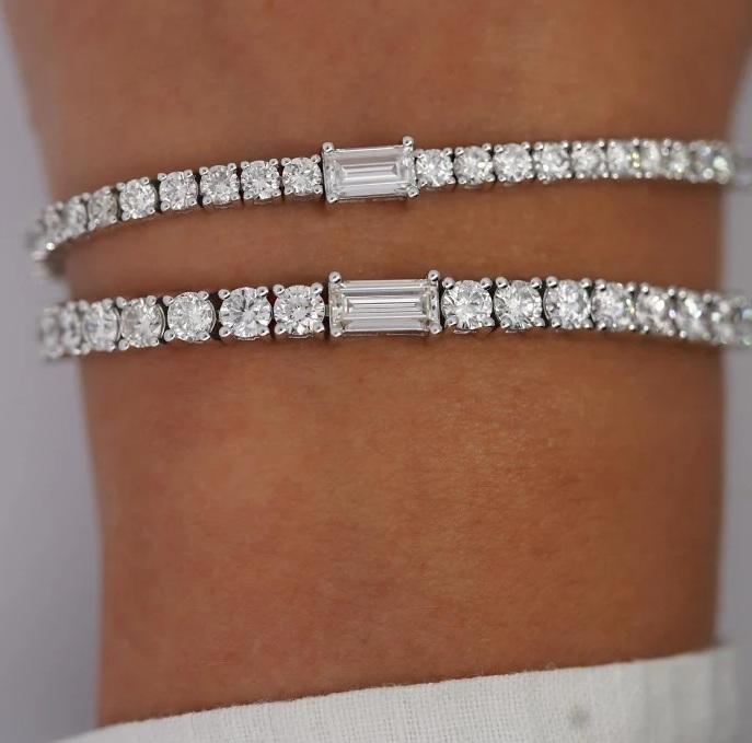 18K White Rose Gold Plated Lab Diamond Tennis Bracelet 9-6 Carat Emerald Cut for Party Gift Occasions Charm Bracelets Christian