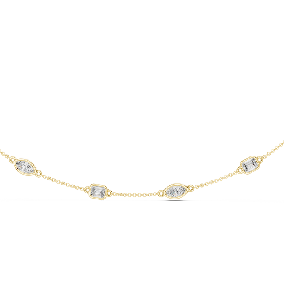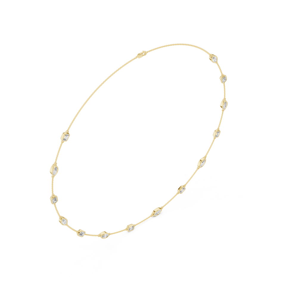18K Yellow Gold Lab Grown Emerald Cut Aurora Bezel Diamond Luxury Chain Necklace
