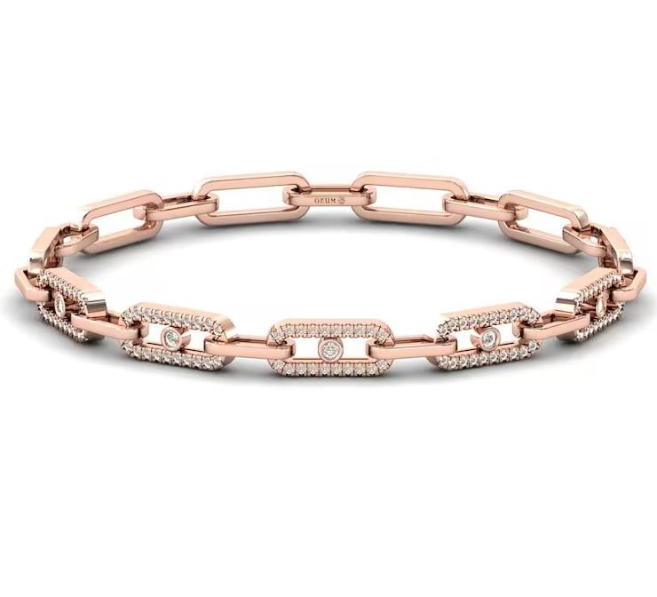 18K Yellow & Rose Gold Diamond Statement Bracelet Natural Brilliant Cut Dainty Jewelry for Her